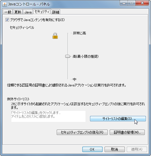 これでJAVAの設定は終了なので、コントロールパネルを閉じる。