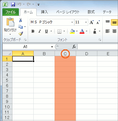 そして、そのセルが縦に並んだものを「列」と言います。 列にはそれぞれ名前が付いていて、列の先頭に名前が書かれています。 左の図の列は、C列です。