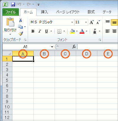 そしてこの、列の名前が書かれている部分のことを「列番号」と言います。
