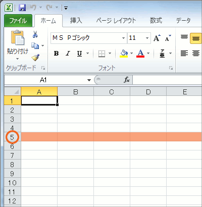 セルが横に並んだものを「行」と言います。 行にも名前があり、行の先頭に名前が書かれています。 左の図の行は、5行目です。
