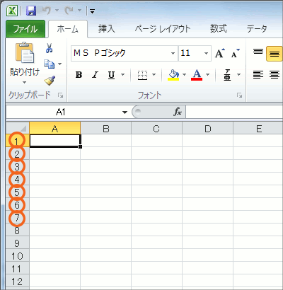 行の名前が書かれている部分のことを「行番号」と言います。 ちなみに、これは覚える必要は無いのですが、列は16,384列、行は1,048,576行もあります! つまり、ワークシートは超デカイ! 列数や行数なんて覚える必要は無いのですが、でもワークシートは超デカイんだ!というイメージだけは持っておくといいと思います。 ちなみに超デカいワークシートの中に、これだけたくさんのセルがあるわけですから、それぞれのセルにも呼び名がちゃんとあります。 B列7行目のセルのことを「B7番地」という風に呼びます。