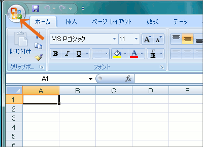 Excel 2007では、この[ファイル]タブに該当するものが、左の図のような丸いボタンになっています。 これをfficeボタンßと言います。