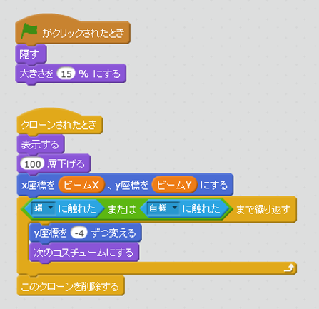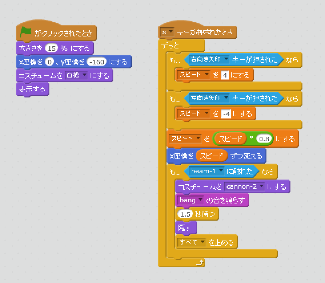 各スプライトのスクリプト完成形