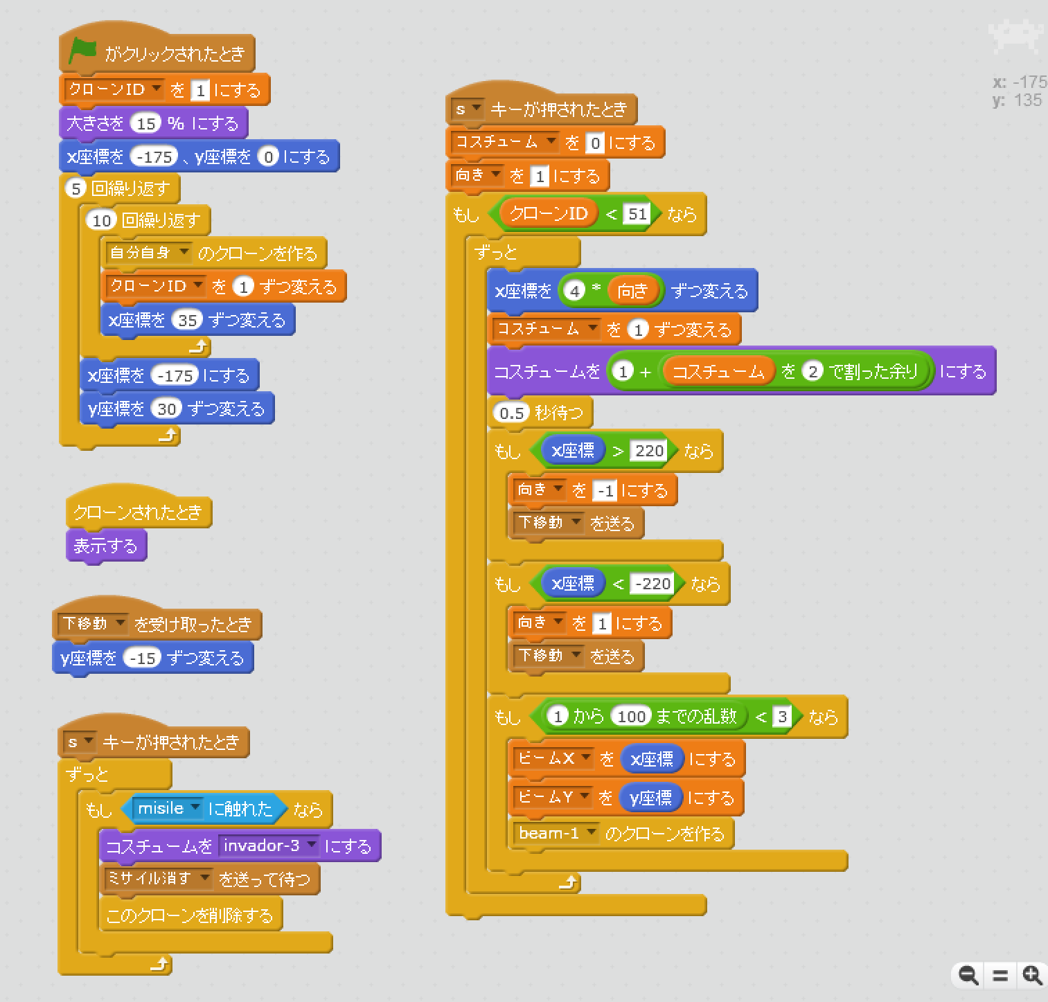 レトロゲームであるインベーダーゲームをScratchで再現してみよう