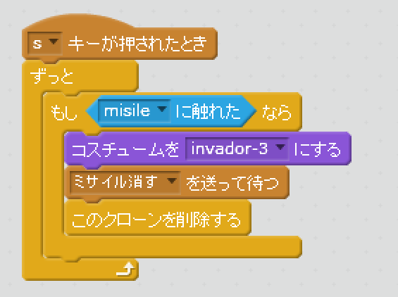 インベーダーにミサイルが当たったときの処理