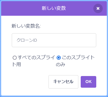 「クローンID」と「コスチューム」は[このスプライトのみ]にチェックを入れる