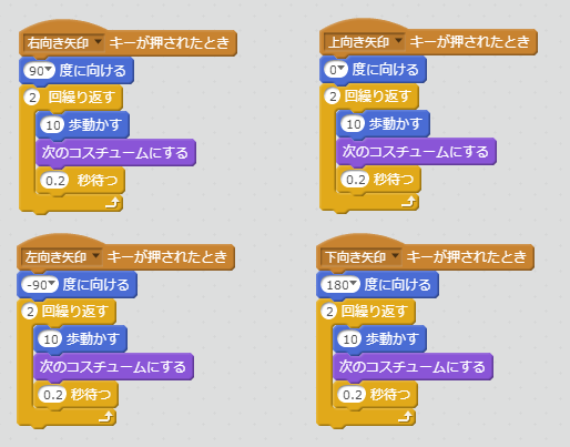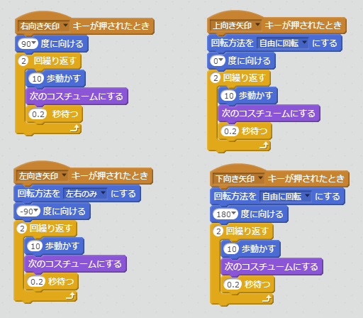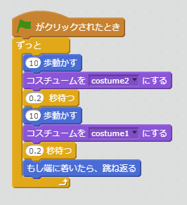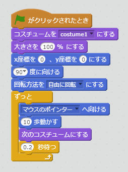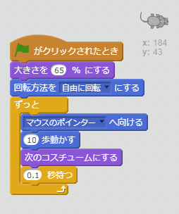 そしてそのマウスに先ほどのスクラッチキャットと同じブロックを組み立てます。