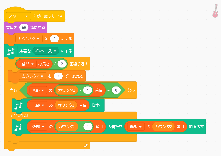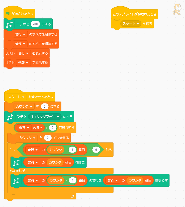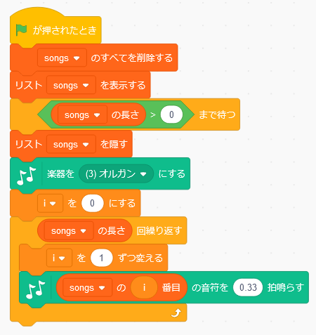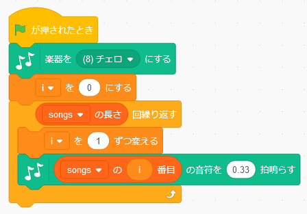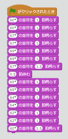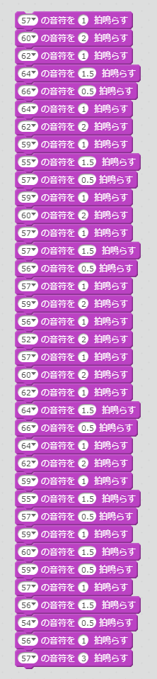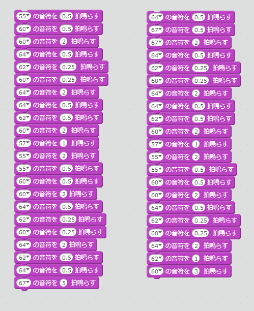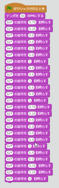 スクリプトには上から順に音符と拍数を読み出し演奏させてゆく。