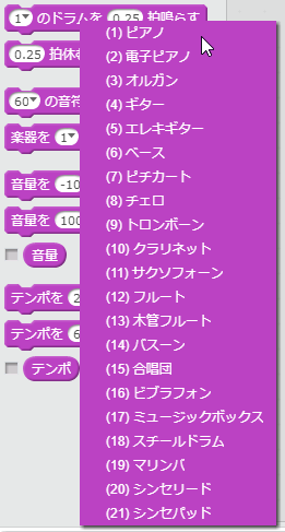 Scratchで出す音には、スプライトに持つ音と、Scratchに内蔵している音の二つがあります。