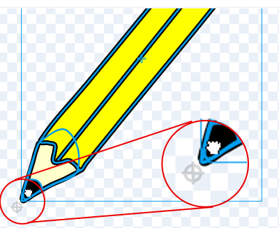 - 選択されたら、ドラッグして鉛筆の先を中心点に合わせる。
