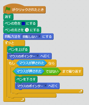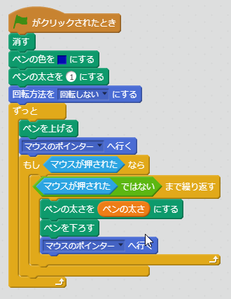 「マウスがクリックされたら、ボタンが放されるまでペンを下ろす」動作をします