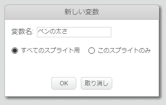 - ダイアログが表示されたら『変数名』をつけOKボタンを押します