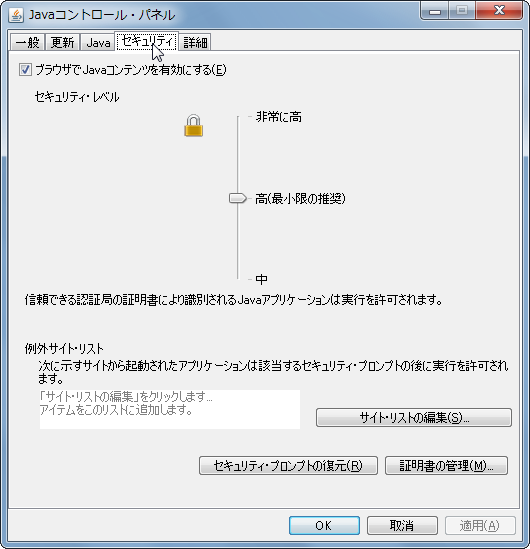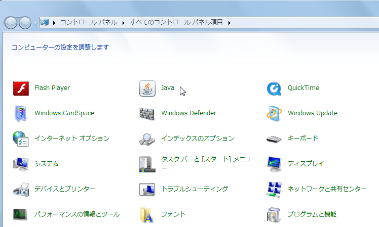 これでJAVAの設定は終了なので、コントロールパネルを閉じる。