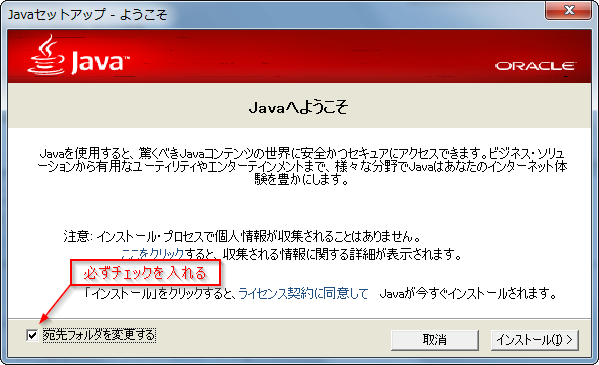 - ダウンロードした「jre-7u45-windows-i586.exe」をダブルクリックして実行する